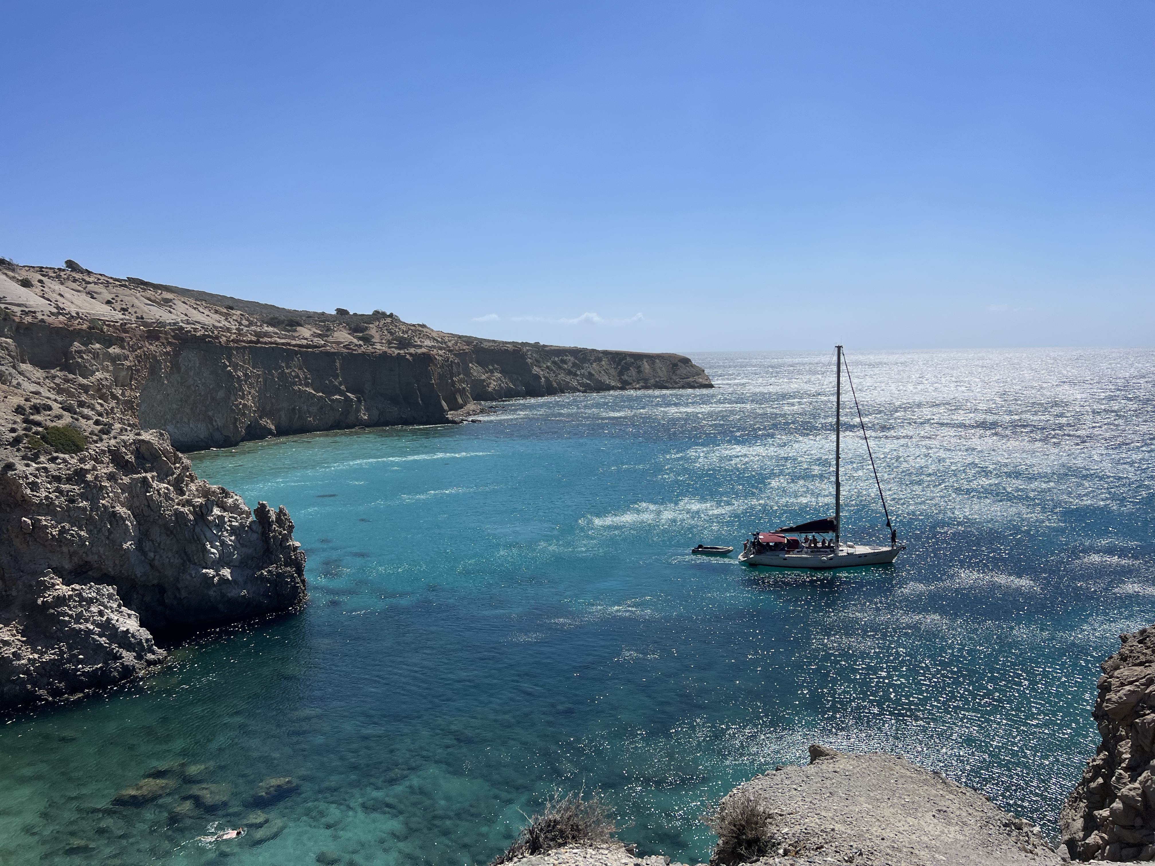Milos, a volcanic island in the Cyclades, is known for its surreal rock formations, mineral-rich cliffs, and pristine beaches, with a unique coastline shaped by ancient eruptions and a climate that supports both rare marine life and dramatic geological landscapes.