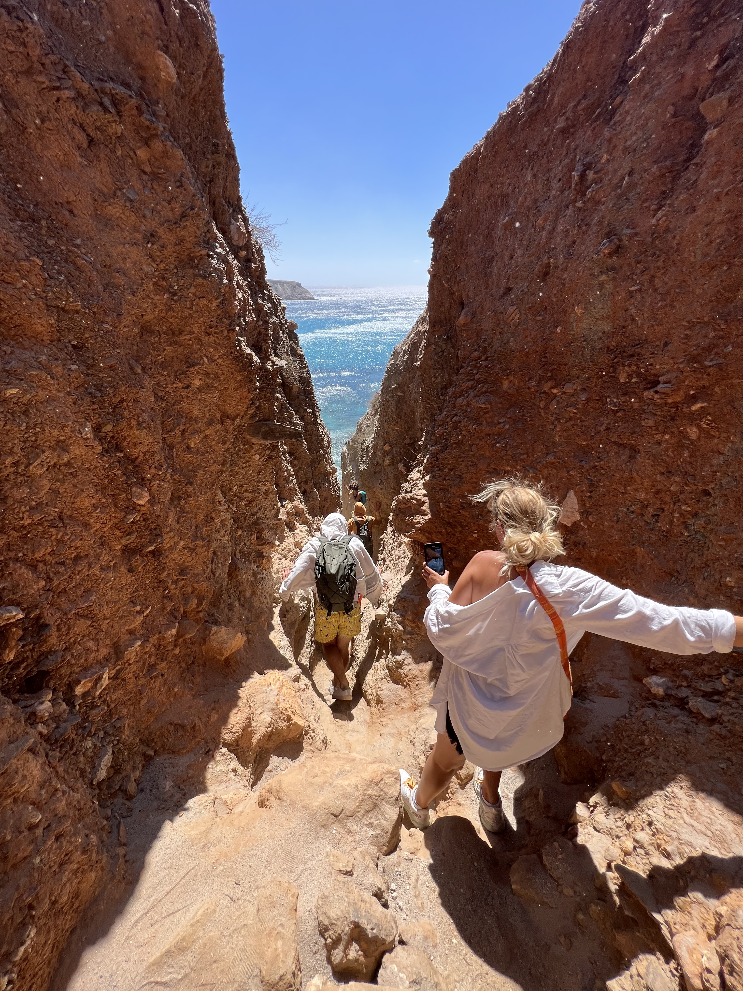 Reaching this hidden beach is an adventure in itself—even seasoned hikers must navigate the steep descent with caution. The journey involves scrambling over rugged rocks and carefully climbing down a rickety ladder, but the reward is a secluded paradise waiting below.